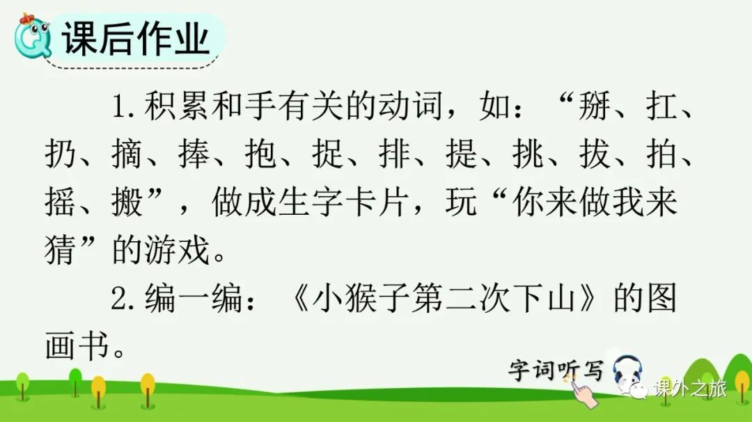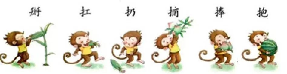 二、结合插图,说说小猴子下山以后看到了什么,做了什么。