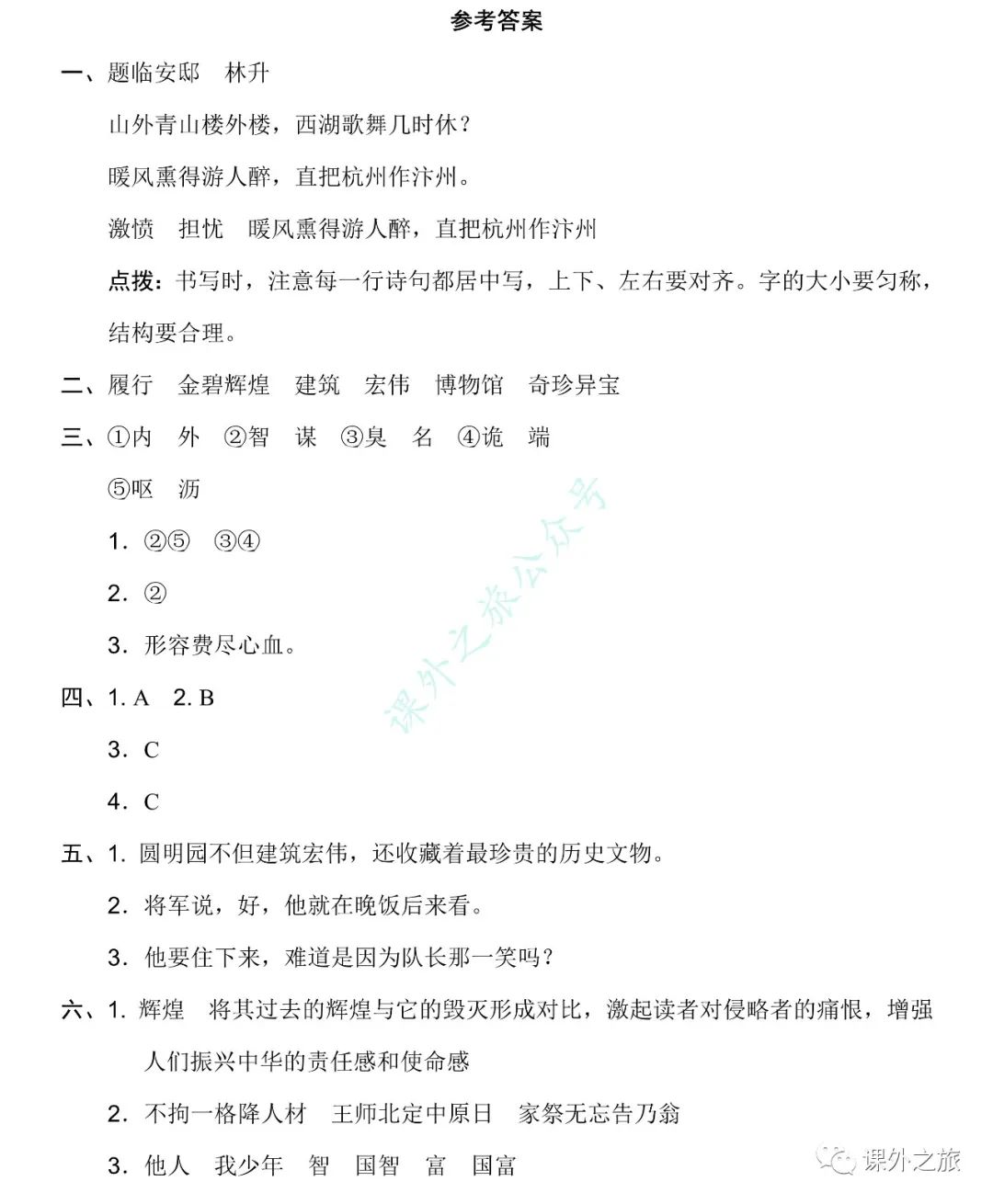 统编版语文六年级上册第八单元知识梳理填空(附答案)