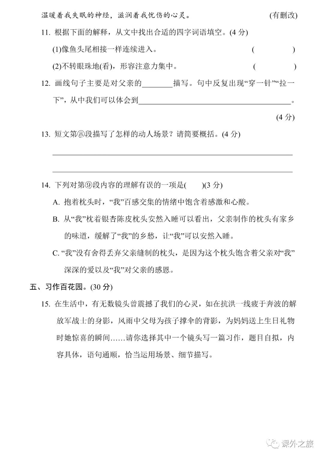 统编版语文六年级上册第八单元知识梳理填空(附答案)