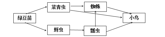 小草→蚜虫→瓢虫→蜘蛛→小鸟