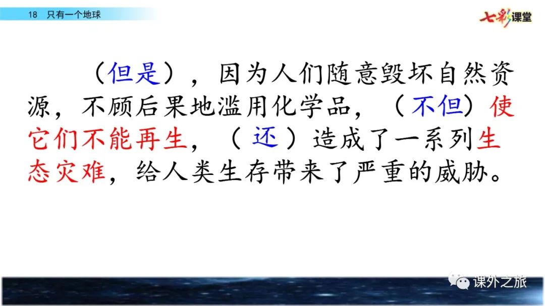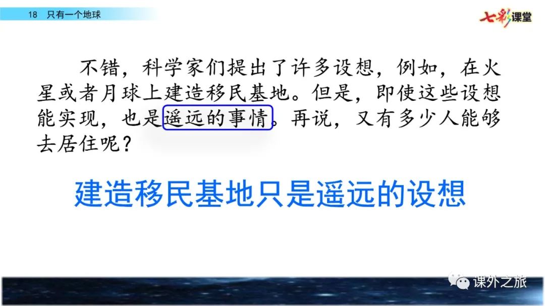 第四部分为第8、9自然段,引用宇航员的感叹、以假设式的递进写了人类的选择只有一个,那就是“我们要精心地保护地球,保护地球的生态环境”。